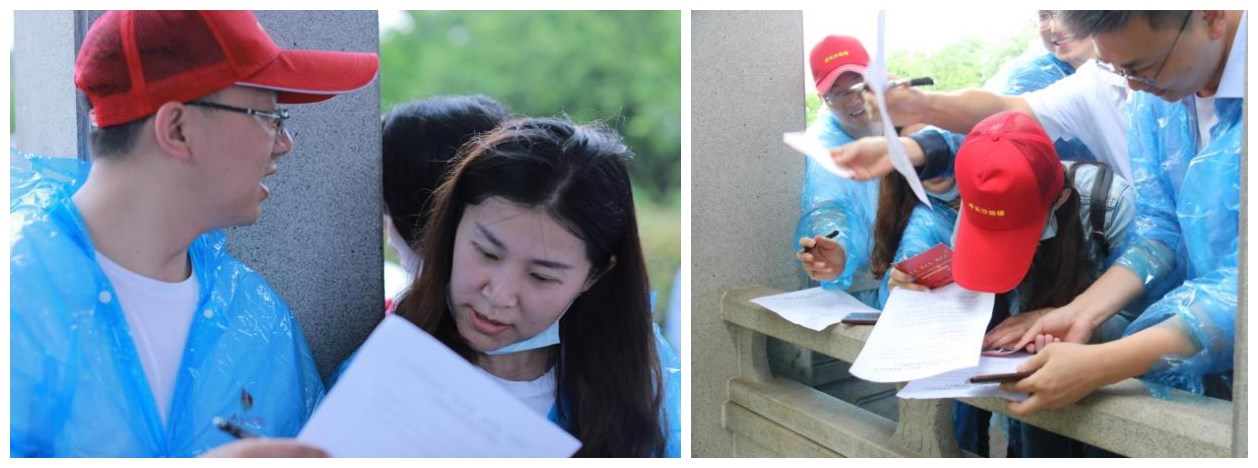 下午兩點(diǎn),全體人員統(tǒng)一乘坐地鐵來到橘洲游客中心,整個健步走全程5公里,每四人一組,大家自由組隊(duì),每隊(duì)到四個指定答題點(diǎn)進(jìn)行黨史學(xué)習(xí)教育題目作答,最終決出三支優(yōu)勝隊(duì)伍。出發(fā)之前,大家還用簽字筆在紅色扇面上一筆一劃寫下了“不忘初心、牢記使命”“紅心向黨”等對黨的宣言。
