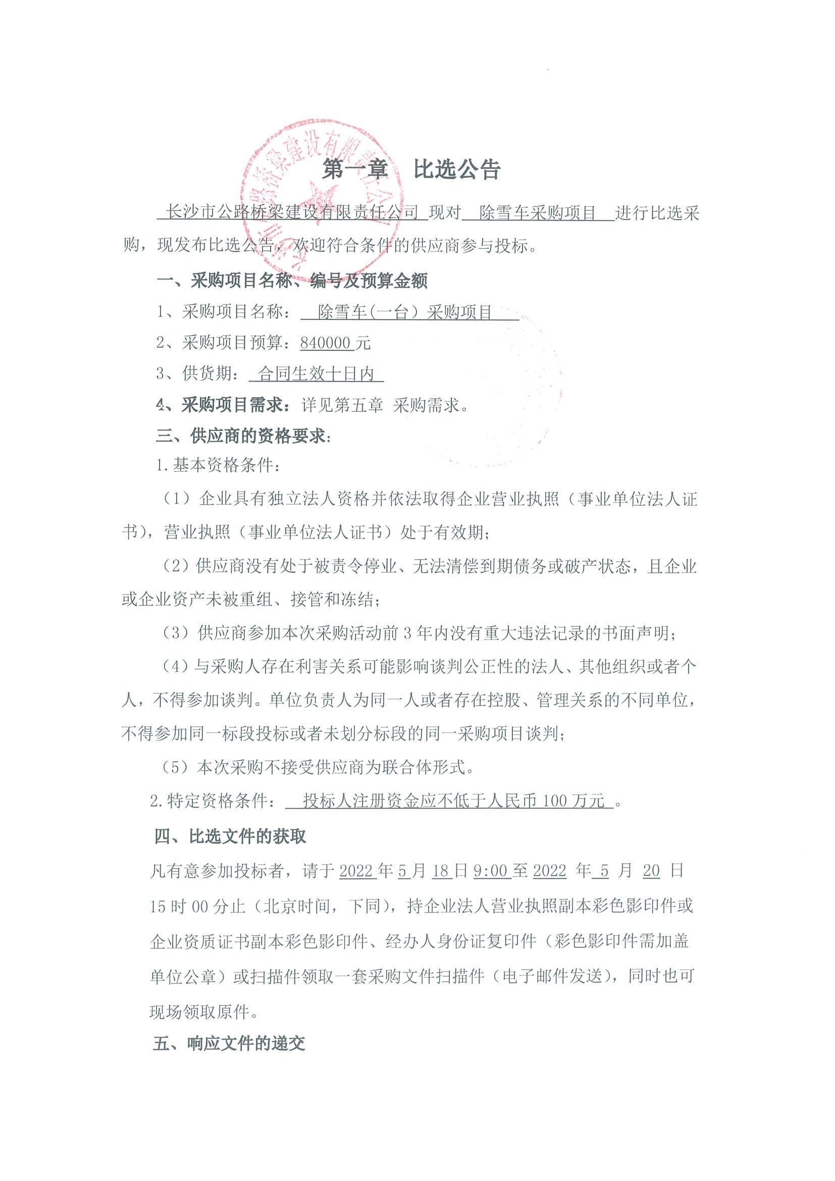 除雪車(chē)采購(gòu)項(xiàng)目比選公告
